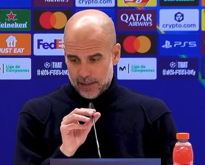 欧冠联赛阶段第6轮,曼城客场2-1击败皇家马德里,赛后,曼城主帅瓜迪奥拉出席新闻发布会接受媒体提问。