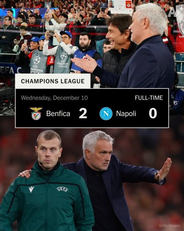 本菲卡2-0完胜那不勒斯,穆里尼奥迎关键救赎